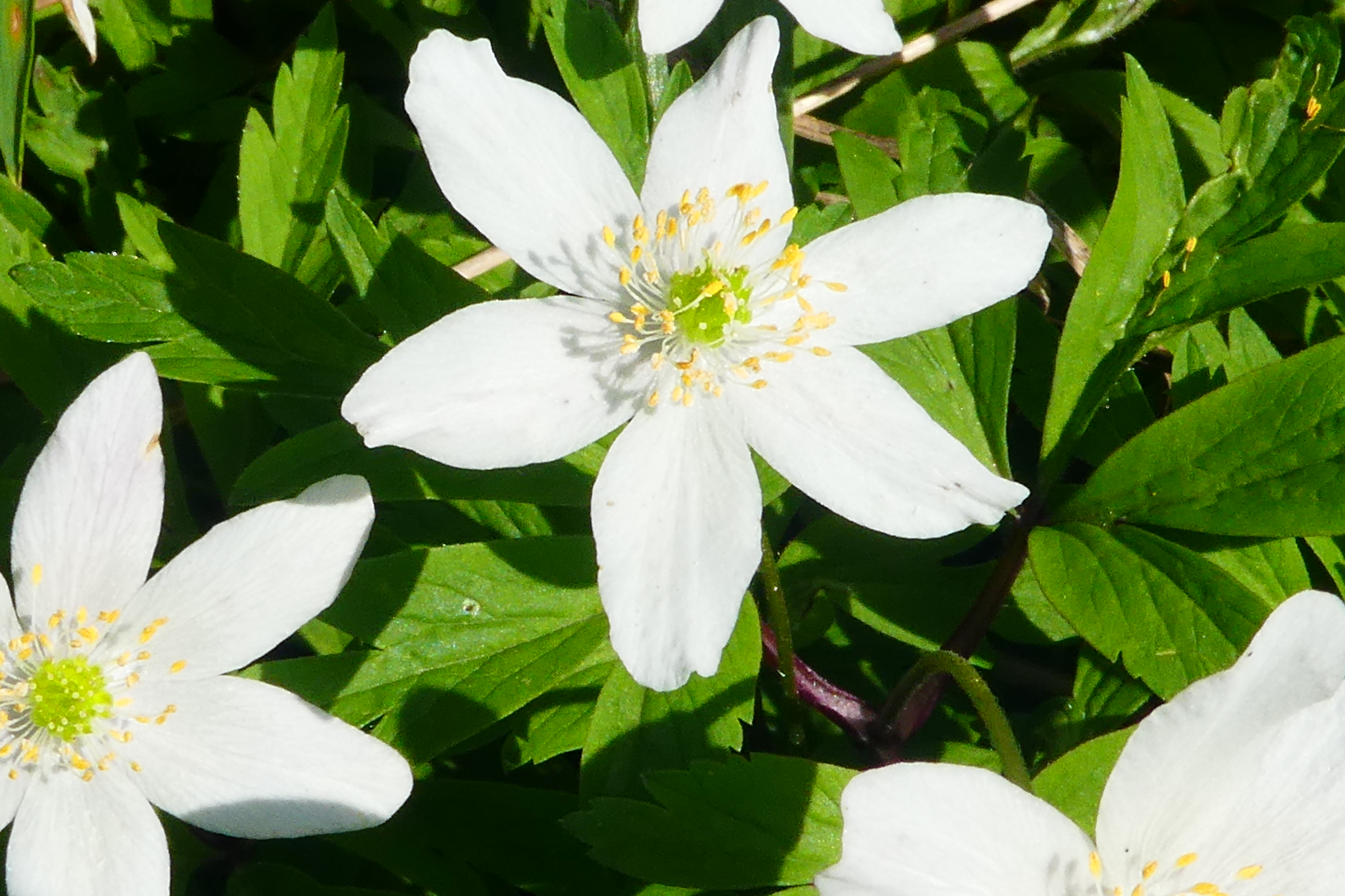 Lots of Sanicle, sheets of Wood Anemones and Bluebells with Wood Millet, Wood Melick, Great Woodrush, Wood Sorrel, Pignut, Yellow Archangel and Woodruff.