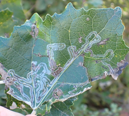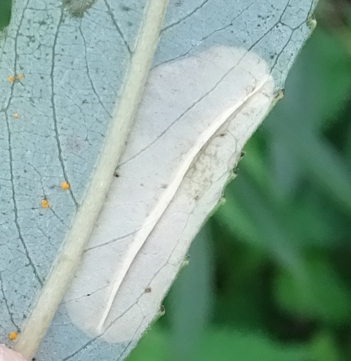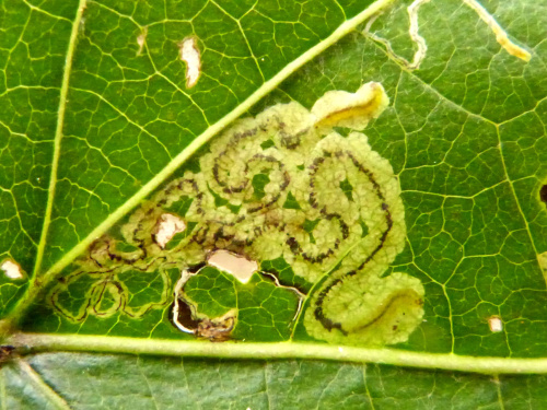 Leaf-mining is a specialised form of larval feeding on plants. For at least part of their life, the larva of some species of moths, flies, sawflies and beetles live and feed within a leaf, usually between the upper and lower epidermis; some may also pupate within the leaf. For many of these species, the pattern of feeding and deposition of frass may be unique to that species and, in combination with the host plant and characteristics, this lets us identify the species.