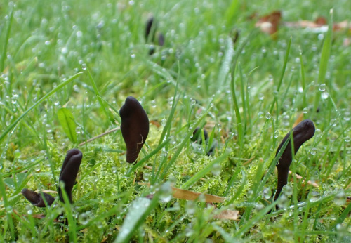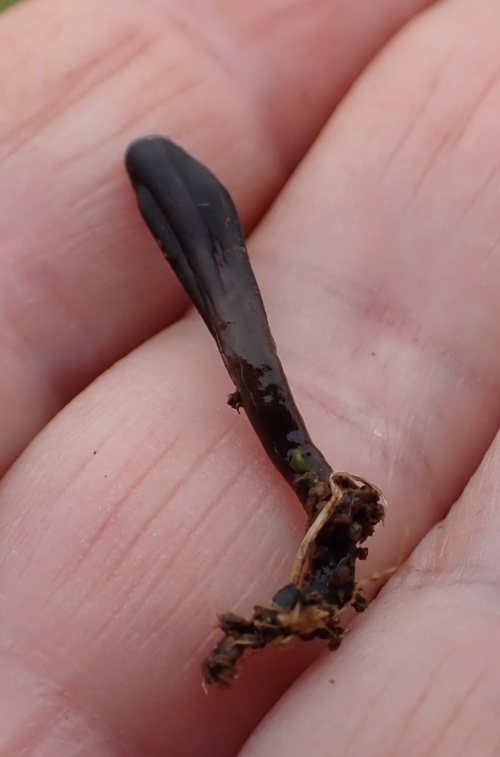 Earth-tongues are uncommon in Leicestershire and Rutland, but they are not easy to find and may be overlooked. Along with waxcaps, pink-gills, clubs and corals, they are indicators of unimproved grasslands of conservation value. They are nearly always in short grass or moss, and it is worth looking in old undisturbed lawns, churchyards and cemeteries. They are sometimes confused with Dead Man's Fingers or Dead Moll's Fingers (Xylaria) but these are in a different and unrelated family https://www.naturespot.org/family/xylariaceae