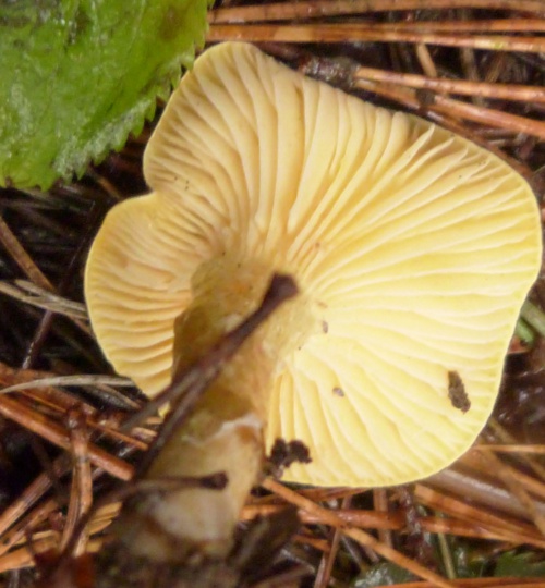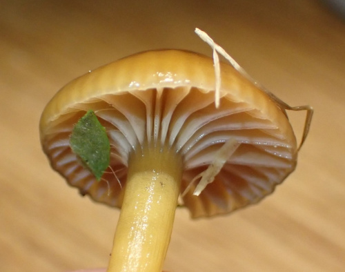 - the way the gills are attached to the stem or stipe; cutting vertically through the cap and stipe will help to see this (some examples are here: decurrent; adnate; adnexed/free)