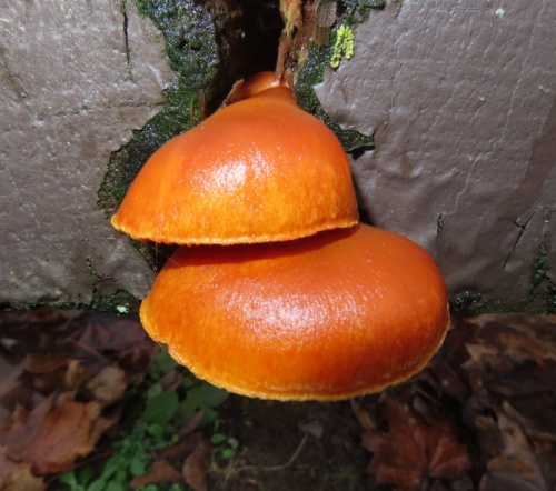 Fungi are not plants, as was thought to be so in the past, but in a separate Kingdom of their own. In most cases, the main body of the fungus is hidden from view. It is a network of threads (hyphae) collectively called a 'mycelium', which permeate the substrate on which the fungus grows. The hyphae absorb nutrients and water from the substrate. The reproductive spore-producing structures, such as the familiar mushroom or bracket, are the visible parts of the fungus.