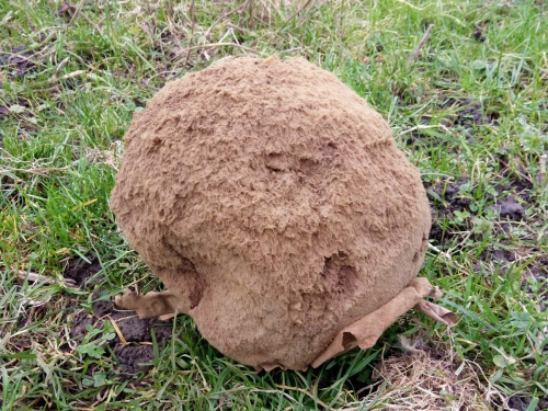 Puffballs (Lycoperdaceae) are a diverse family that include some large and impressive species. Some puffballs have spines or warts on the outer skin which are shed as it matures, leaving a mosaic-like pattern behind (e.g. Lycoperdon nigrescens, the Dusky Puffball). Some species release spores through a central pore (e.g. Lycoperdon and Bovista) and others disintegrate to leave a large spore-mass to disperse in wind and rain (e.g Calvatia, the Giant Puffball). Some species have a stem (e.g. the Pestle Puffball Lycoperdon excipuliforme). Bovista species have a thicker outer skin that cracks and falls away to reveal the thin inner skin around the spore-mass, which then becomes detached from the soil and rolls around to disperse the spores. Many are grassland species, but some may be found in woodland (e.g. the Common Puffball Lycoperdon perlatum) or associated with dead tree stumps or buried wood (e.g. the Stump Puffball Apioperdon pyriforme).