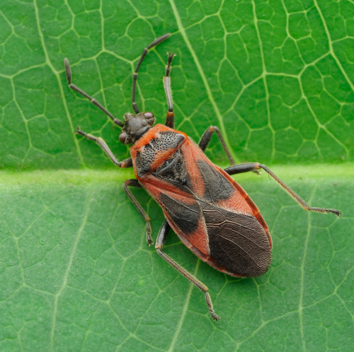 Insects in the order Hemiptera are the 'true bugs'. They are unique amongst insects in having their mouthparts formed into a piercing beak or 'rostrum', used to suck juices from plants or other animals. Their life cycles do not have a larval and pupal stage; instead, juvenile bugs have a series of nymph-stages or 'instars', which progressively have more adult-like characteristics. Hemiptera are divided into distinct sub-orders: