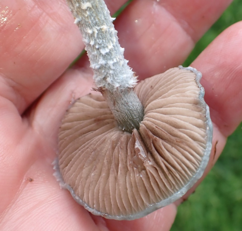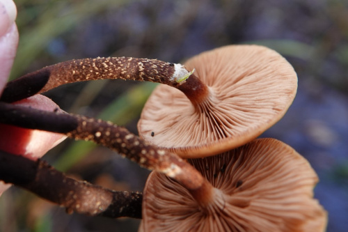 - the way the gills are attached to the stem or stipe; cutting vertically through the cap and stipe will help to see this (some examples are here: decurrent; adnate; adnexed/free)