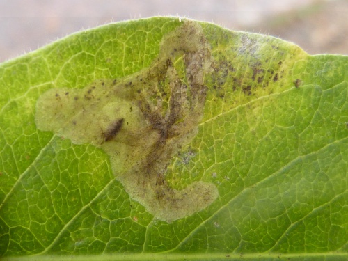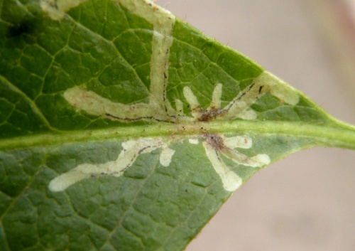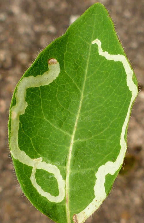 Take clear backlit photographs of the whole leaf-mine, from both leaf surfaces, showing frass pattern and location of mine within leaf or other part of plant. Always note the host plant accurately.
