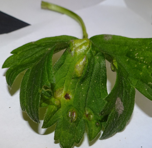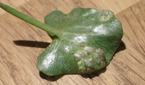 The Entylomataceae also produce smut-like spores within the host leaf-tissue. Some are gall-causing. They are more often recorded as the asexual form, e.g. Entyloma ficariae - fluffy white conidiophores bearing conidia emerge from the stomata on the leaf underside.