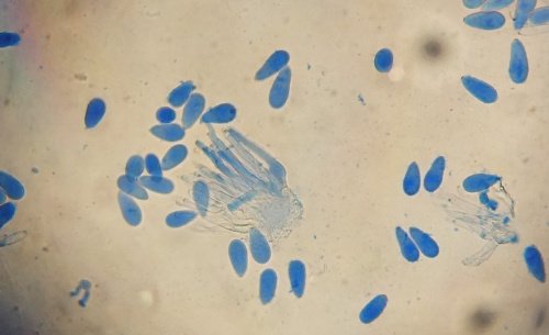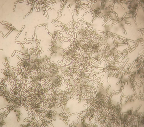 The colour of the spores can be very helpful. It is best seen by taking a spore-print from a collected specimen - advice on doing this is in many of the resources below. For some fungi, microscopic examination of the spores may be needed for identification.
