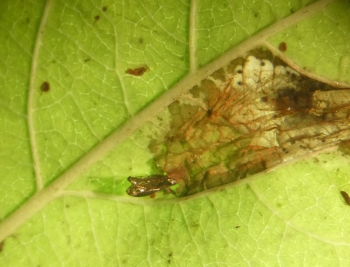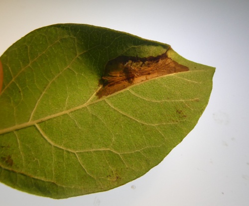 Photograph leaf mine and pupa; note host species