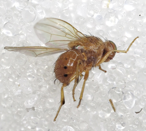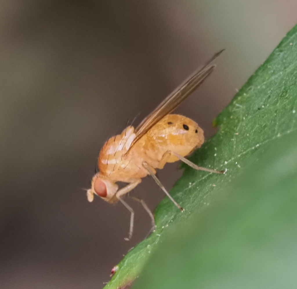 3.5-4mm. All orange with four black spots on the abdomen. Strong ocellar setae that are placed just beside the ocellar triangle. Two rows of acrostichal bristles.