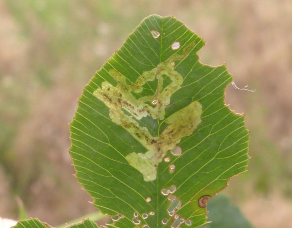 Provide backlit photographs of the whole leaf-mine in the leaf, and the larva, and note the host plant.