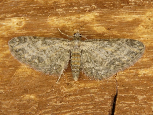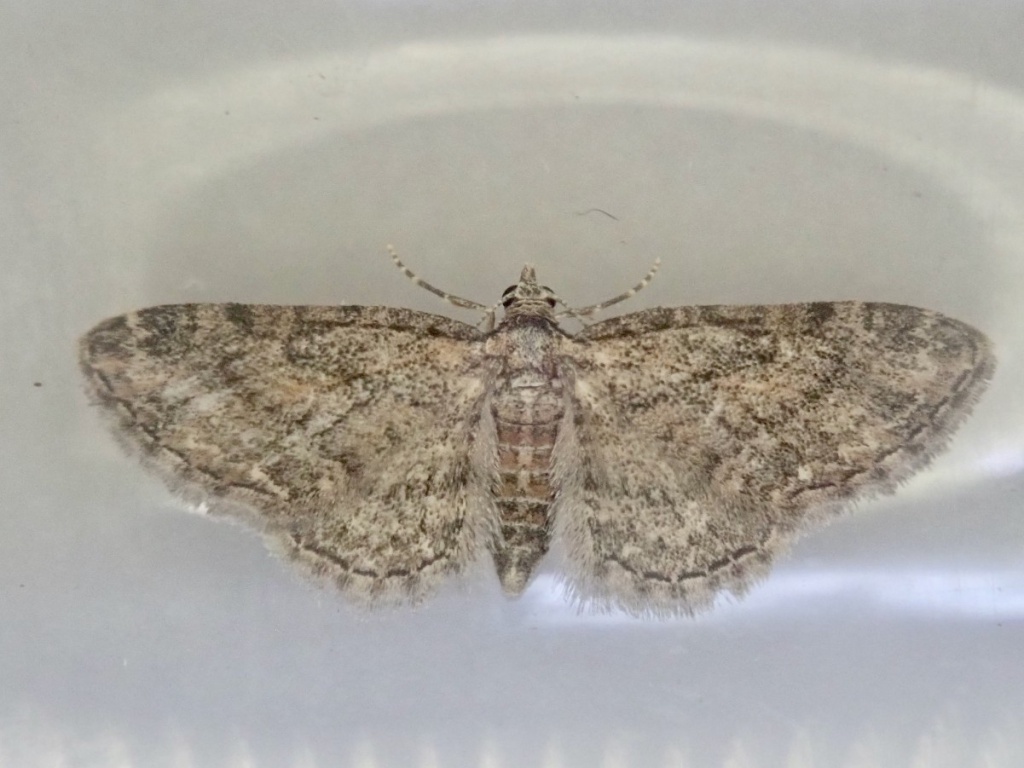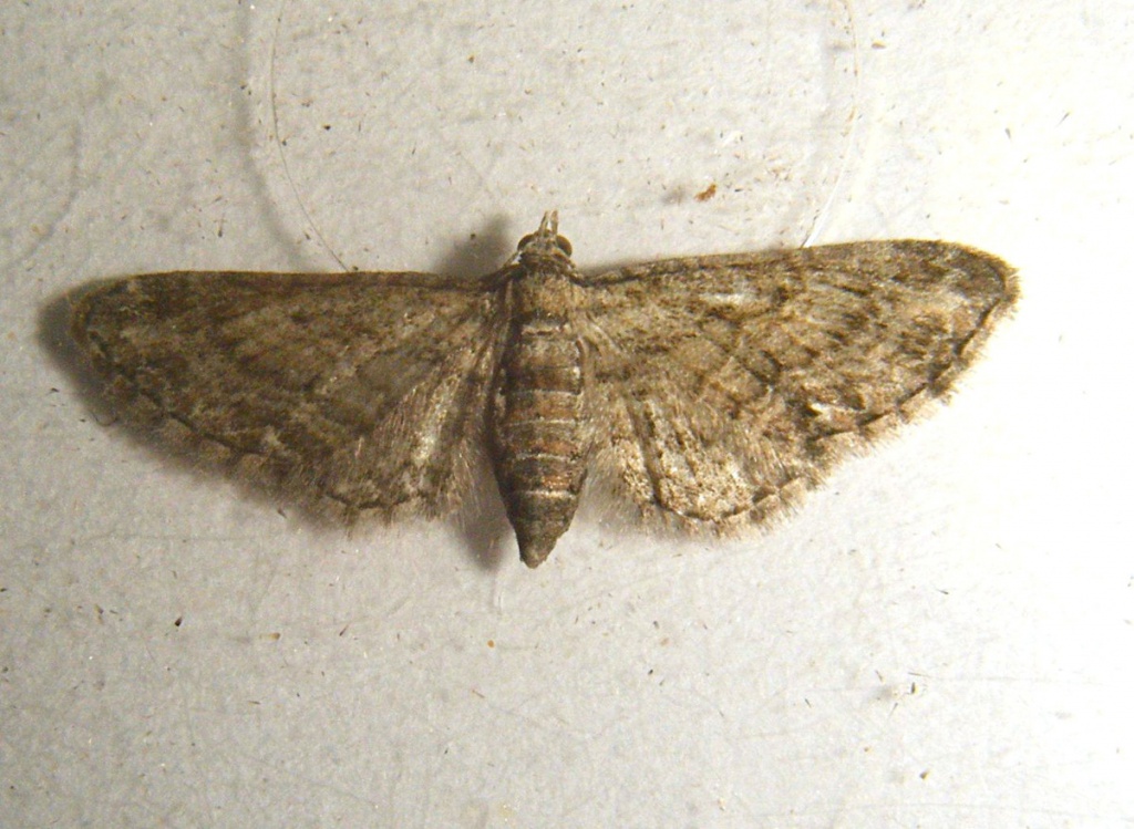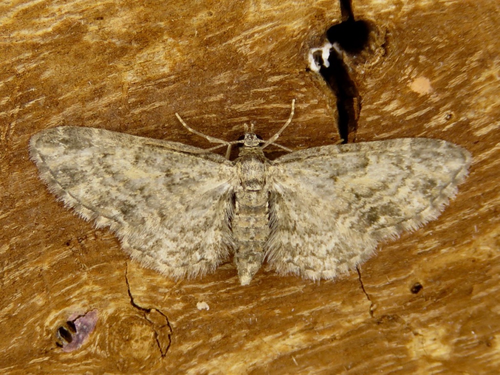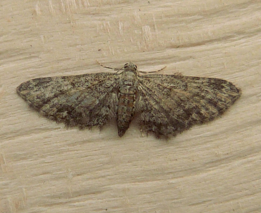 Wingspan 13 to18 mm. This pale straw brown species is one of the smaller 'pug' moths.
