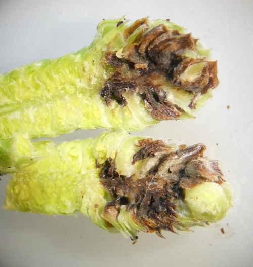 Catkin must be opened and mites photographed to complete a record - Phyllocoptruta coryli mites are very small and can only be seen under high magnification