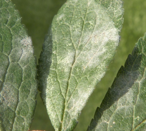 Erysiphe prunastri is a powdery mildew found on on Prunus spinosa (Blackthorn) and other Prunus species.