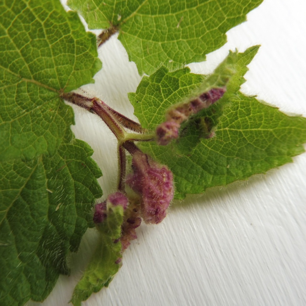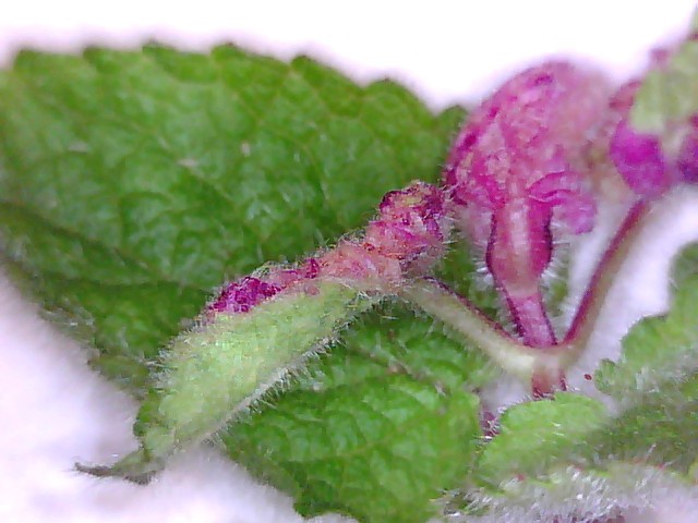 The larva of the gall midge Wachtliella stachydis causes galls on Hedge Woundwort or Betony. Shoot-tip leaves are curled, thickened and often yellowed. The flowerbuds remain closed with enlarged calyces, and are more hairy than usual.. Larvae inside are orange when mature, white when young.