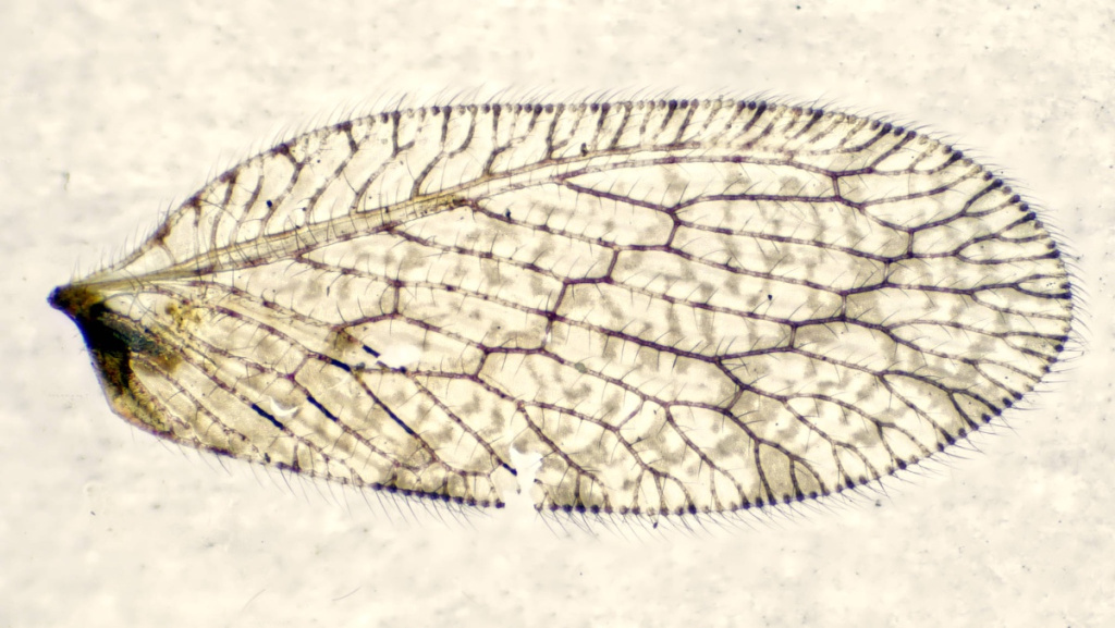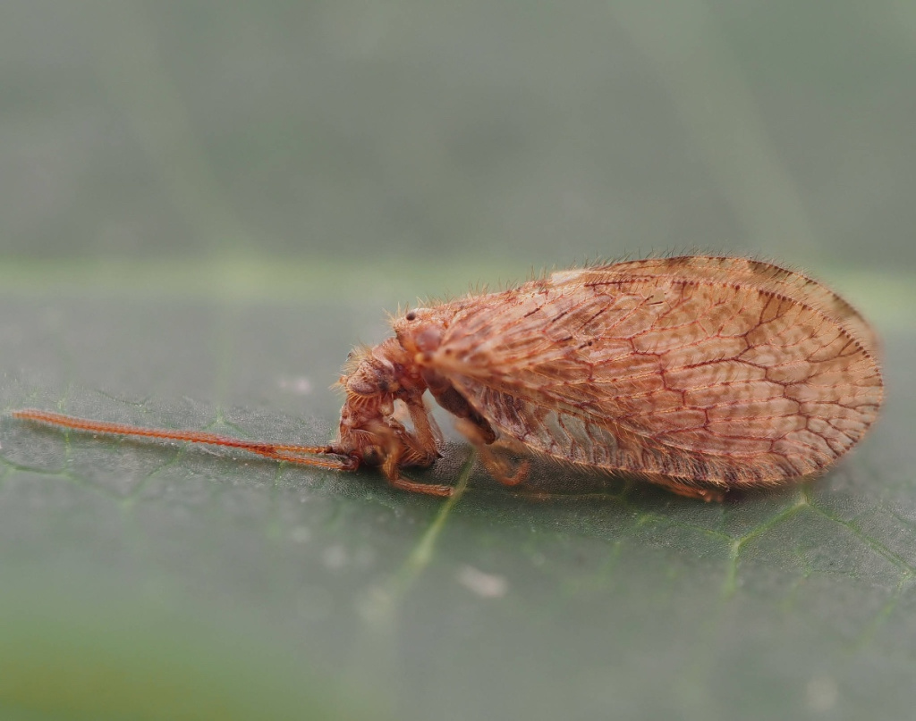 A small brown lacewing - usually reddish brown in colour. It has four branches to the radial vein.