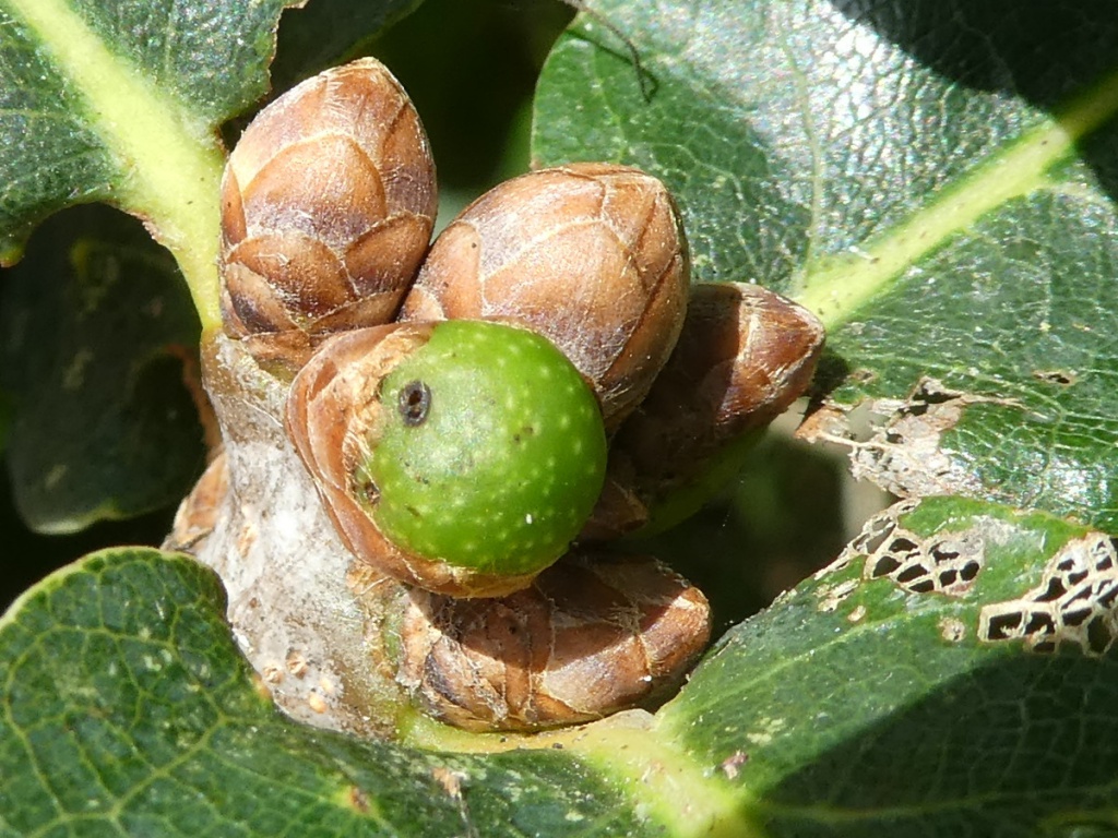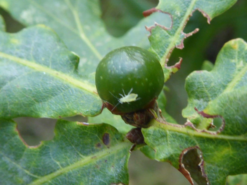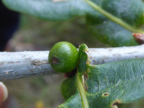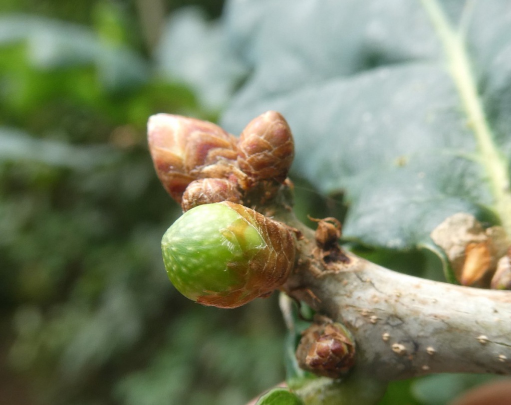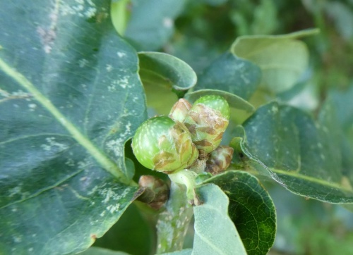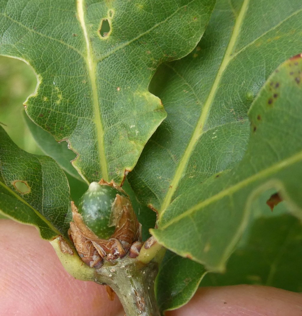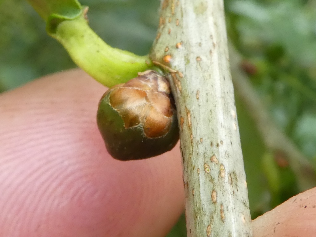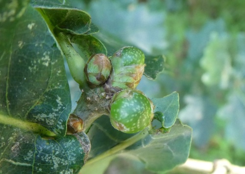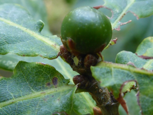 Agamic galls are formed in buds and are green, smooth and rounded with a small point. They are quite large at up to 6mm diameter. Bud scales are present at the base of the gall, but eventually may fall off. Eventually the galls drop out of the bud, leaving a scar surrounded by the remains of the scales.
