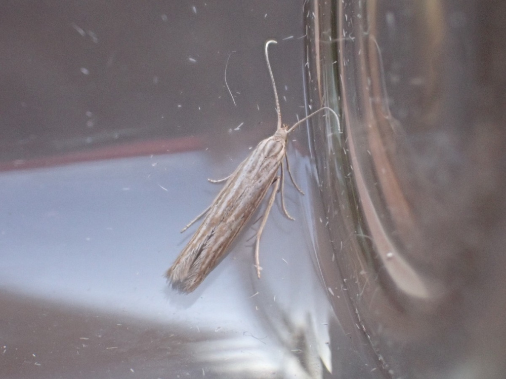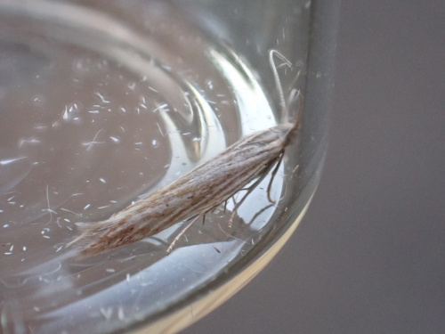 Wingspan about 12 mm. There are a number of very similar Coleophora species and adults need to be determined by examination of the genitalia.