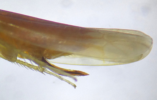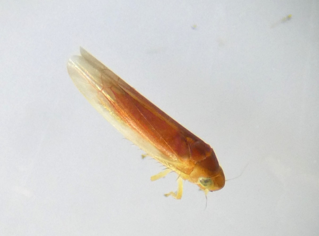 A small, narrow leaf hopper in the sub-family Typhlocybinae, usually associated with Beech. Very variable in coloration including a very distinctive brick-red; also bright yellow, pale yellow or whitish. Occasionally the apex of the forewing is greyish or smoky, and there may be darker streaks on the forewings. The host plant assists ID, and dissection of male parameres or female ovipositor should confirm it.