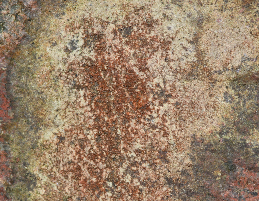Forms mosaics on sheltered surfaces of base poor rocks.