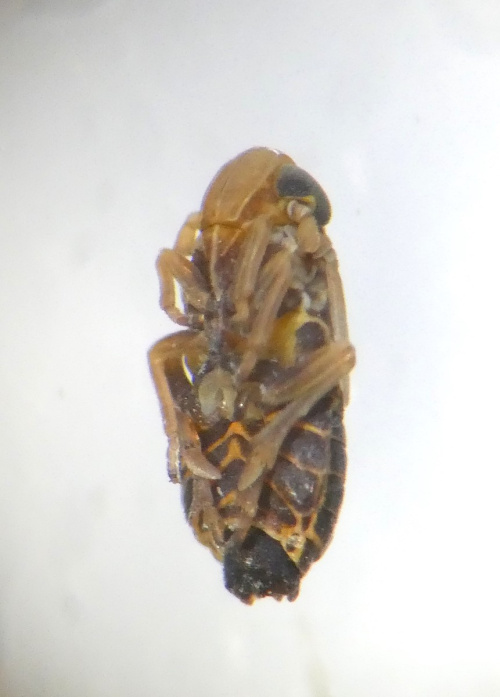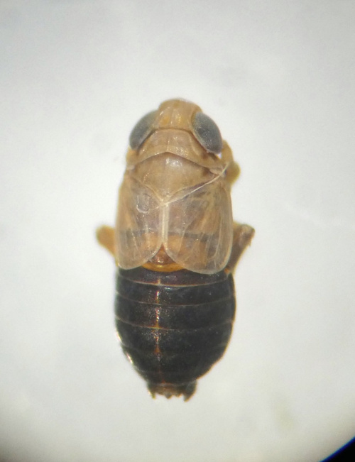 A small planthopper - 2 - 2.5mm. Males have a dark abdomen with a pale mid-line, and pale brown head, pronotum and forewings.