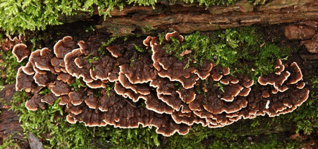 Photograph caps and fertile surface; note habitat and substrate. This is rarely recorded in VC55 and we recommend that your record is verified from a specimen by an expert before submission to Naturespot; microscopic examination may be needed.