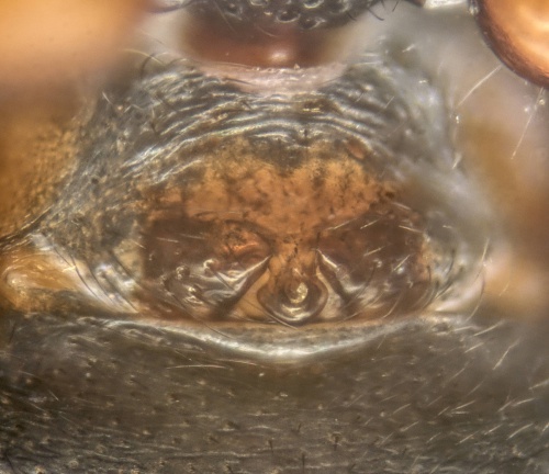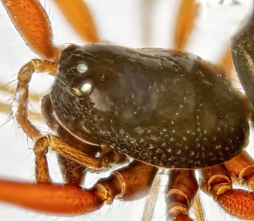 Length 1.8 to 2.8 mm. Prosoma dark brown to black-brown, punctured with numerous large pits, male with elevated head region. Legs light brown, to dark brown. Opisthosoma dark brown to black-brown.