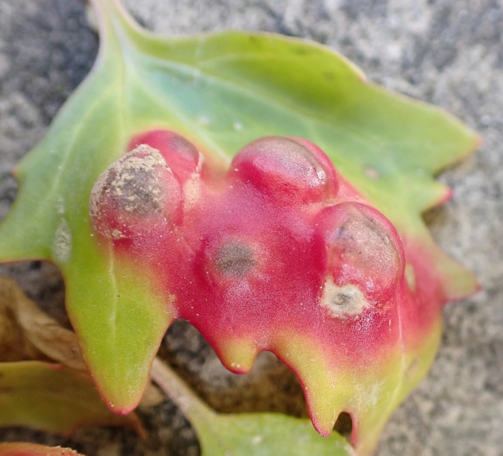A gall-causing fungus that affects fat-hen, goosefoot, orache and related plants in the Chenopodiaceae family. Red or brownish pustules are formed on the leaf surface.