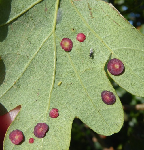 Mature galls fall from the leaves in autumn and the adult insects emerge in early spring. The sexual generation then form tiny egg-shaped galls between leaf nodes.