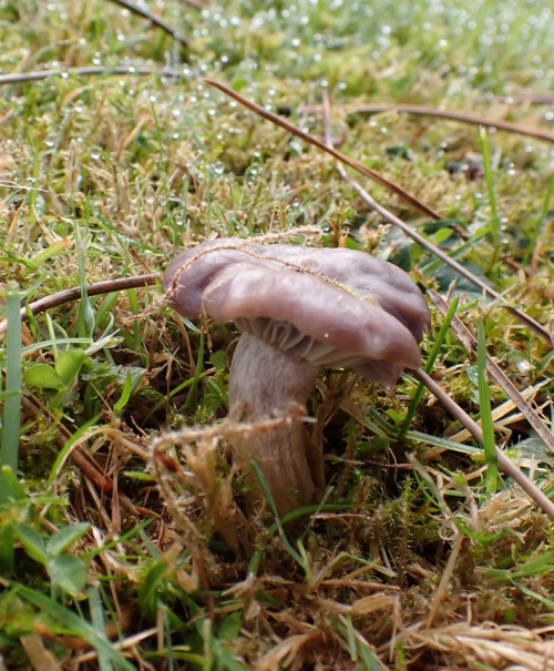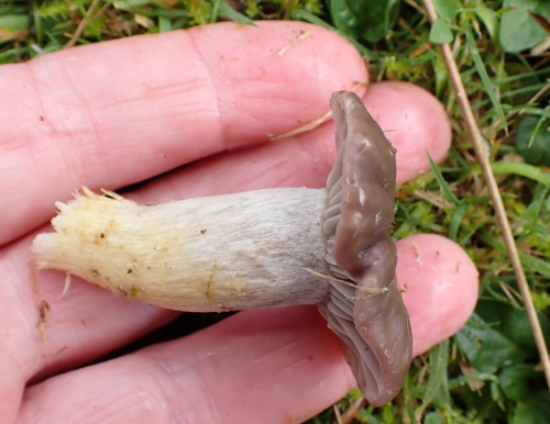 There are several other species of waxcaps with grey caps, but the yellow base to the stipe is distinctive