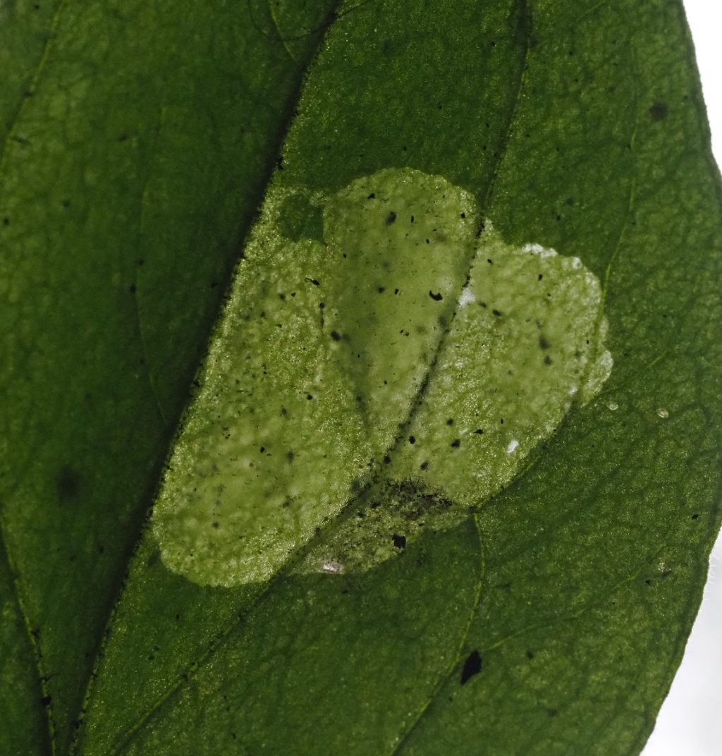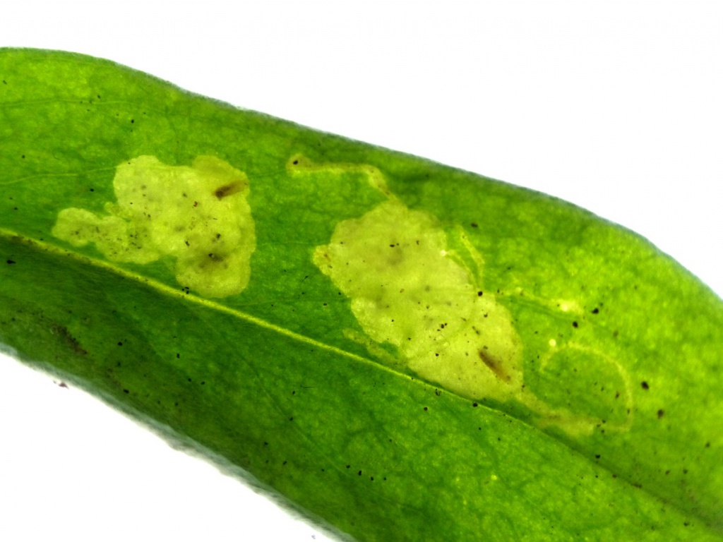 Provide backlit photos of the whole mine in the leaf and note the host species