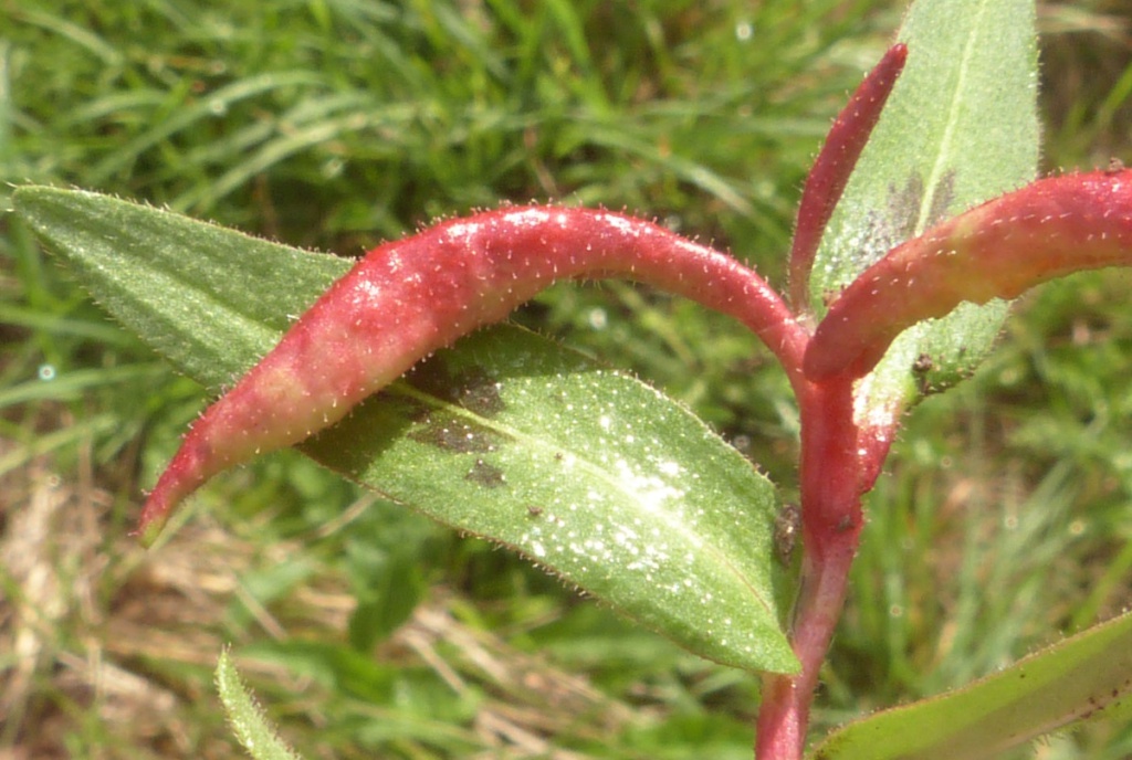 The larva of the gall midge Wachtliella persicariae causes galls to form on various plants of the Polygonaceae family including Amphibious Bistort and Redshank. The gall takes the form of marginal rolls, usually on both sides of the leaf which become markedly thickened and often spirally or otherwise contorted. Often several leaves at the shoot tip are affected.