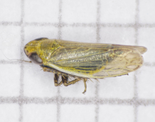 Length 3 to 4 mm. A small greenish leafhopper. There are two short dark streaks at the tip of the vertex, and the frons (face) does not have a central longitudinal pale streak.