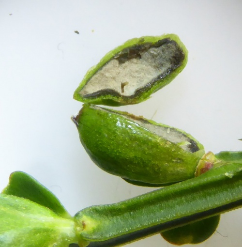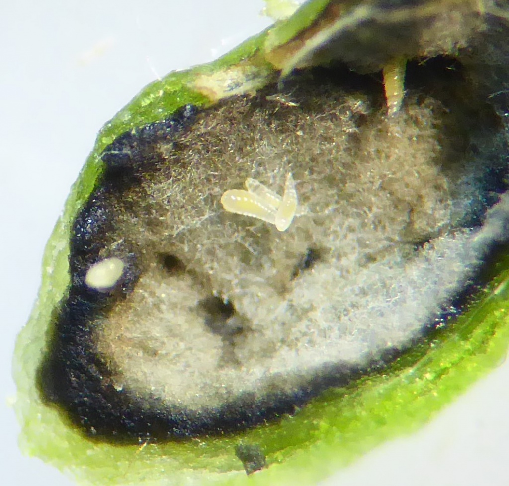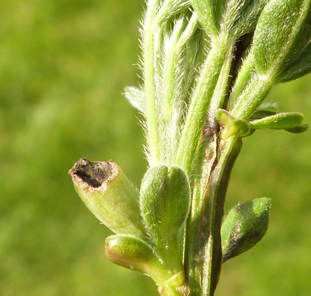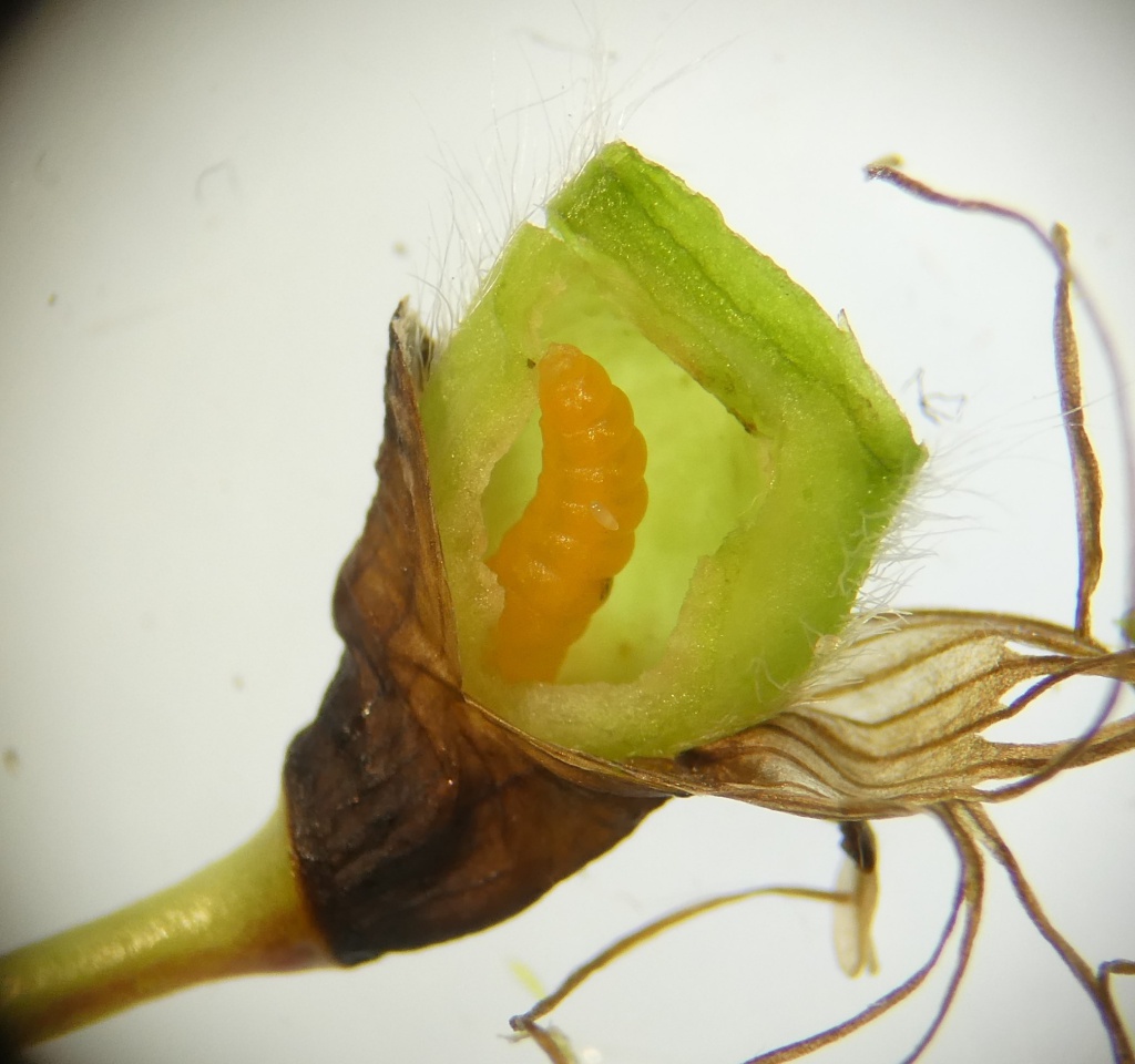 Asphondylia sarothamni is a midge that causes galls to form on Broom (Cytisus scoparius). It is an example of an 'Ambrosia gall', where a fungus is introduced into the host plant by the midge. The inside of the gall is lined with mycelium, which is the actual larval food.