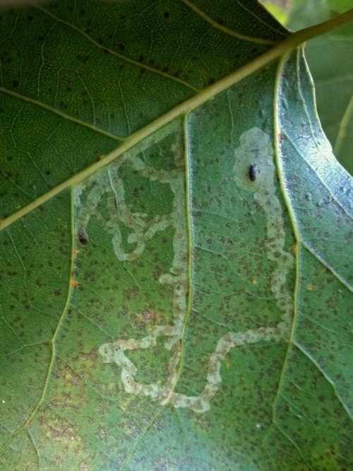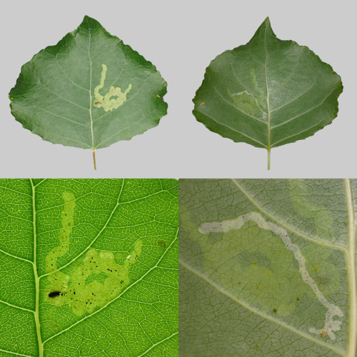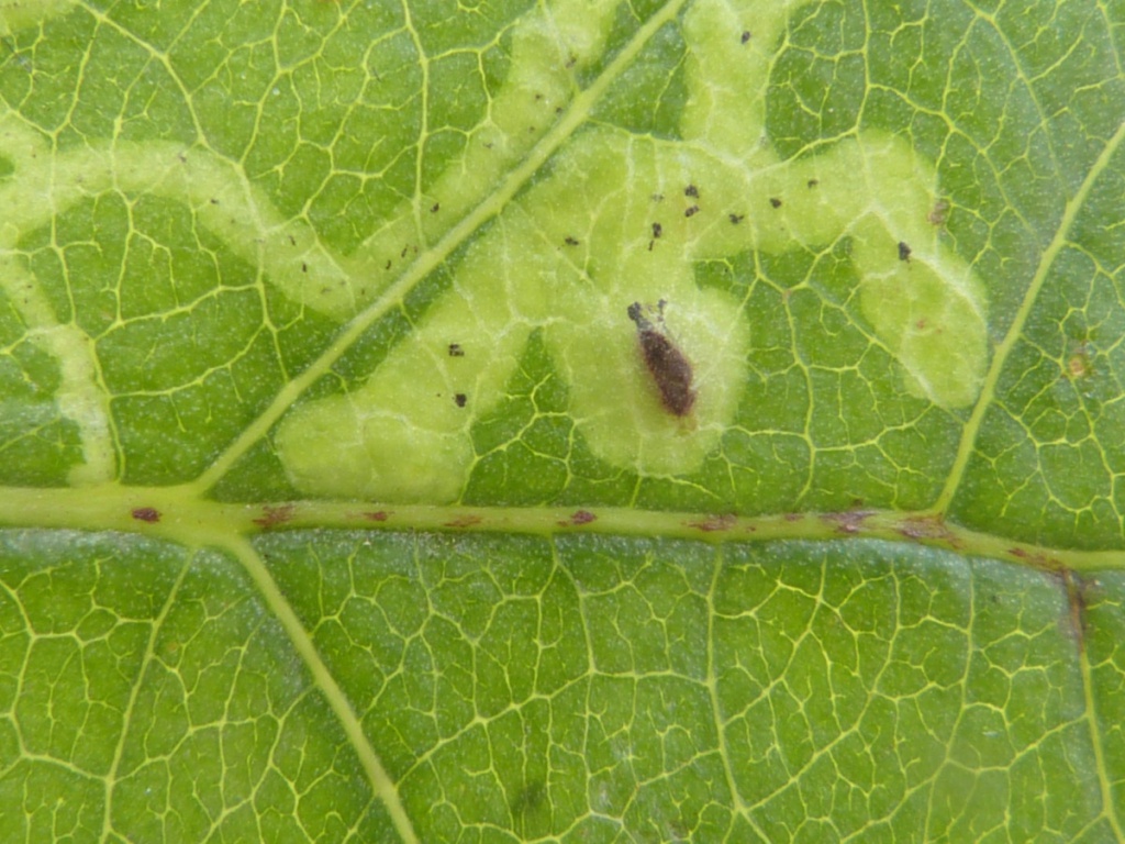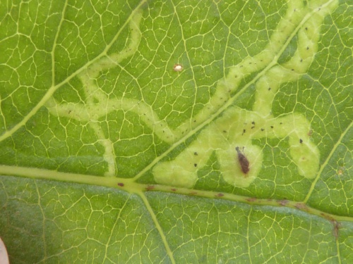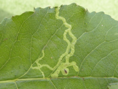 The larvae of the fly Aulagromyza populi produce winding leaf mines in the leaves of various Poplar species. The mines are recorded more often than the adult flies.