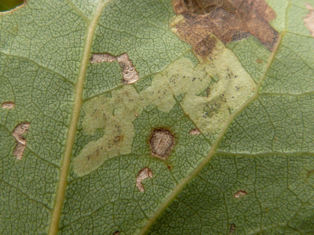Provide backlit photographs of the whole leaf-mine in the leaf, and the larva, and note the host plant