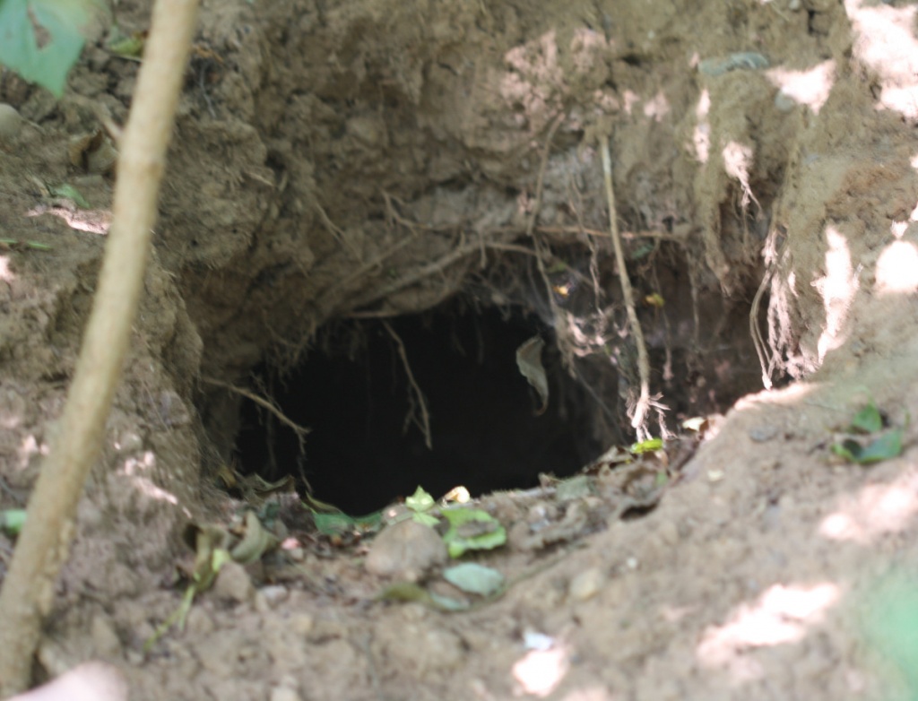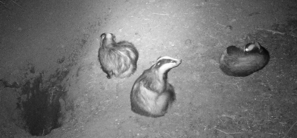 Setts: several types depending on their use, but generally holes are large, D-shaped entrances which extend underground quite steeply, usually with a mound of spoil/soil at the entrance where earth has been excavated, not often found where ground is flat