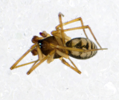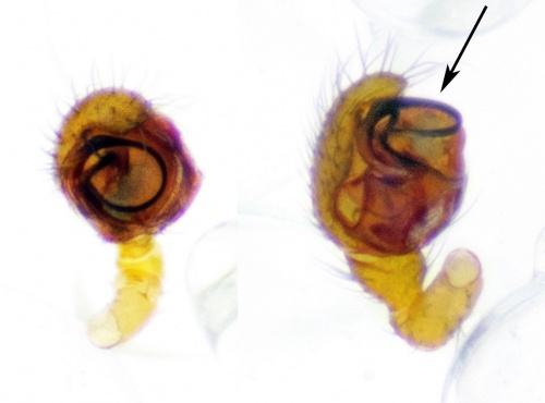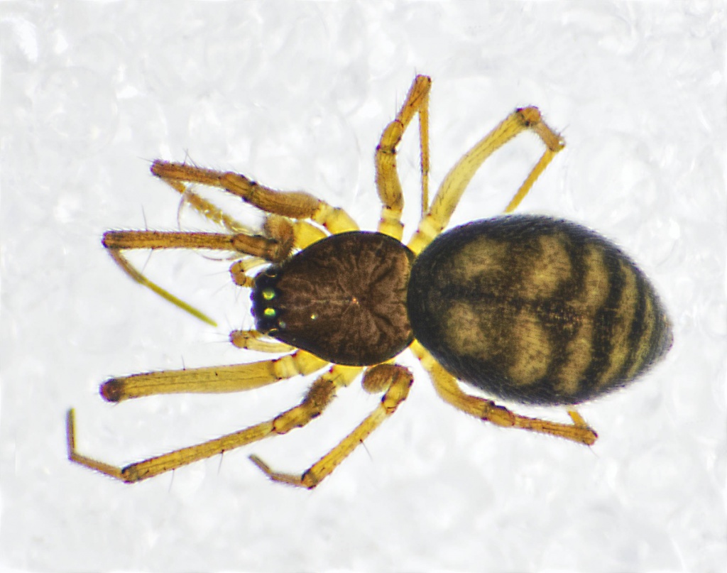 The carapace is brown and the abdomen features black bars on a grey-brown background although this colouration is variable and some specimens are wholly grey-brown or black.