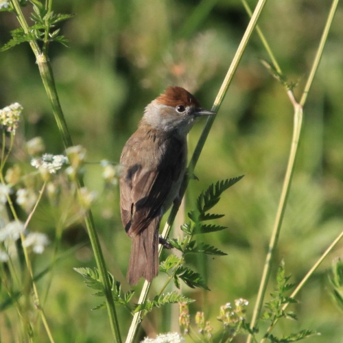 A distinctive greyish warbler, the male has a black cap and the female a chestnut one. Its delightful fluting song has earned it the name 'Northern Nightingale'. Although primarily a summer visitor, birds from Germany and north-east Europe are increasingly spending the winter in the UK.