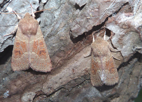 Wingspan 31 to 36 mm. A rather variable species, usually with warm sandy or pinkish browns. The underwing is the distinctive feature, being pinkish white and showing up well in the light of a moth trap. This distinguishes it from the rest of the group.