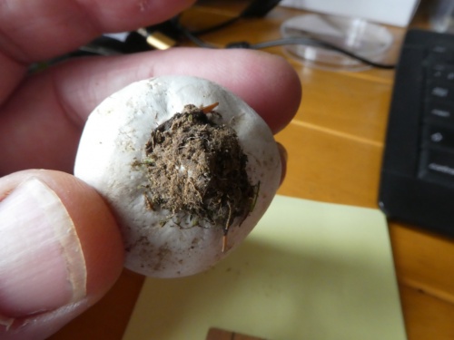 It is similar to the Grey Puffball, Bovista plumbea, but is larger and has a brown spore sac when mature, not grey like B. plumbea.