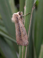 Common Reed (Phragmites australis) is the foodplant, the larvae feeding internally on the stems and pupating within.