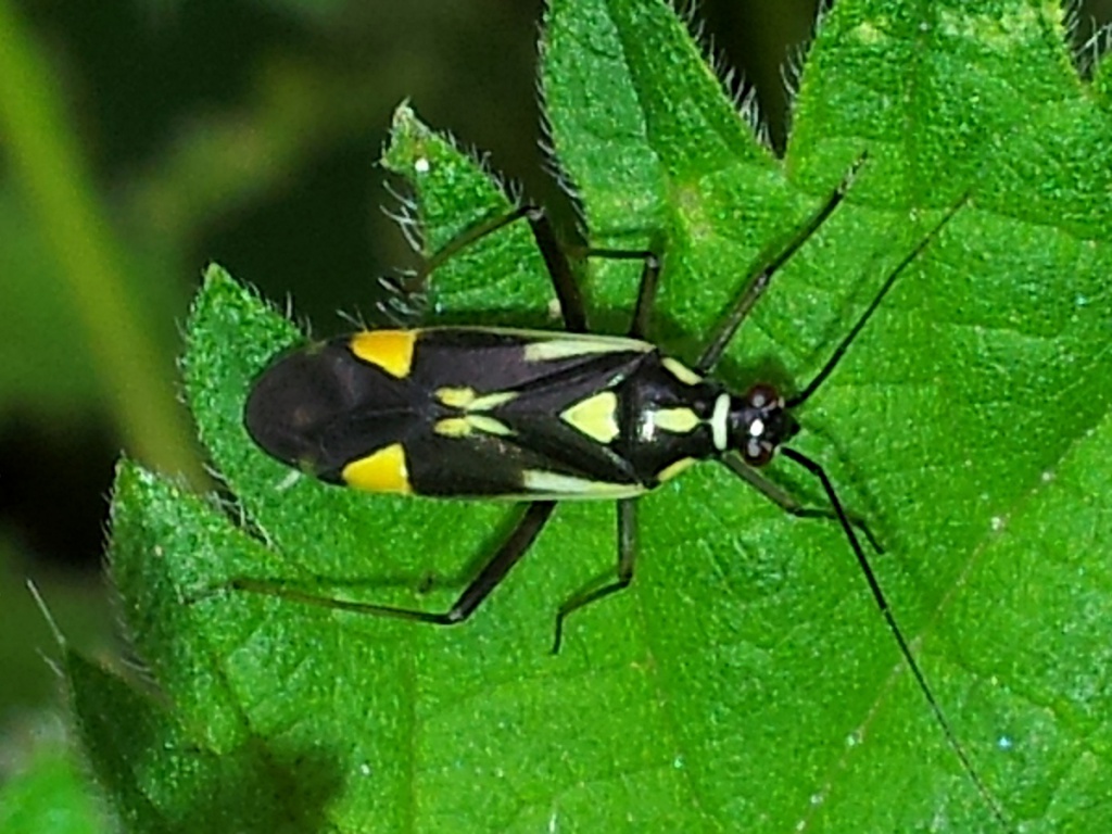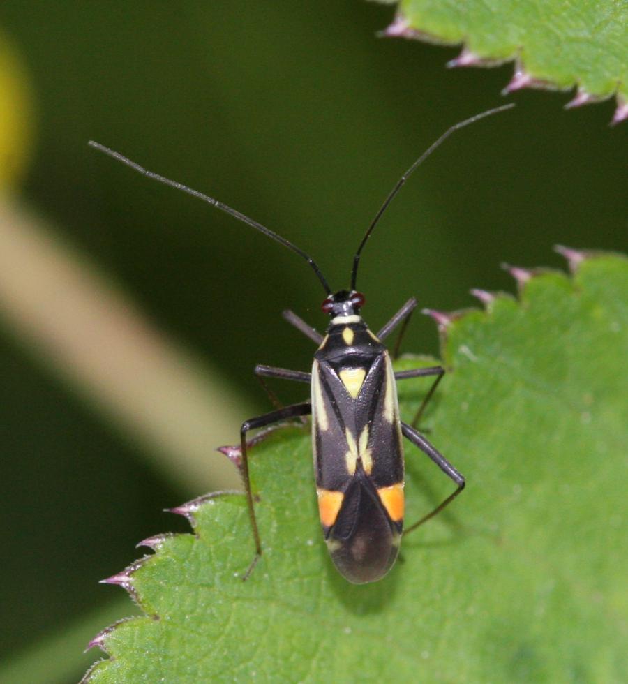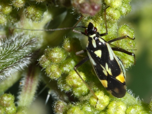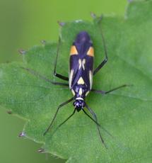 Length 6-8 mm. A conspicuous bug. The chequered pattern of light yellow-white areas and striking orange-yellow cuneus make confusion with other species unlikely.