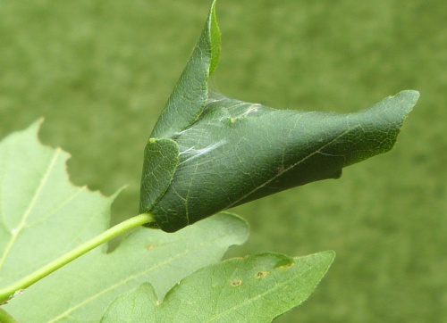 Caloptilia sp. cones on Acer spp. are no longer considered to be reliably identifiable without rearing to adult for det. This follows the colonisation of Caloptilia honoratella and the re-colonisation of Caloptilia hemidactylella, a re-appraisal of foodplant preferences, plus potential for colonisation by other European Acer-feeding Caloptilia spp.