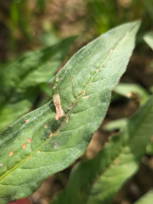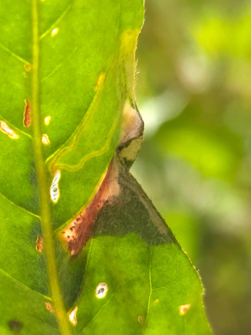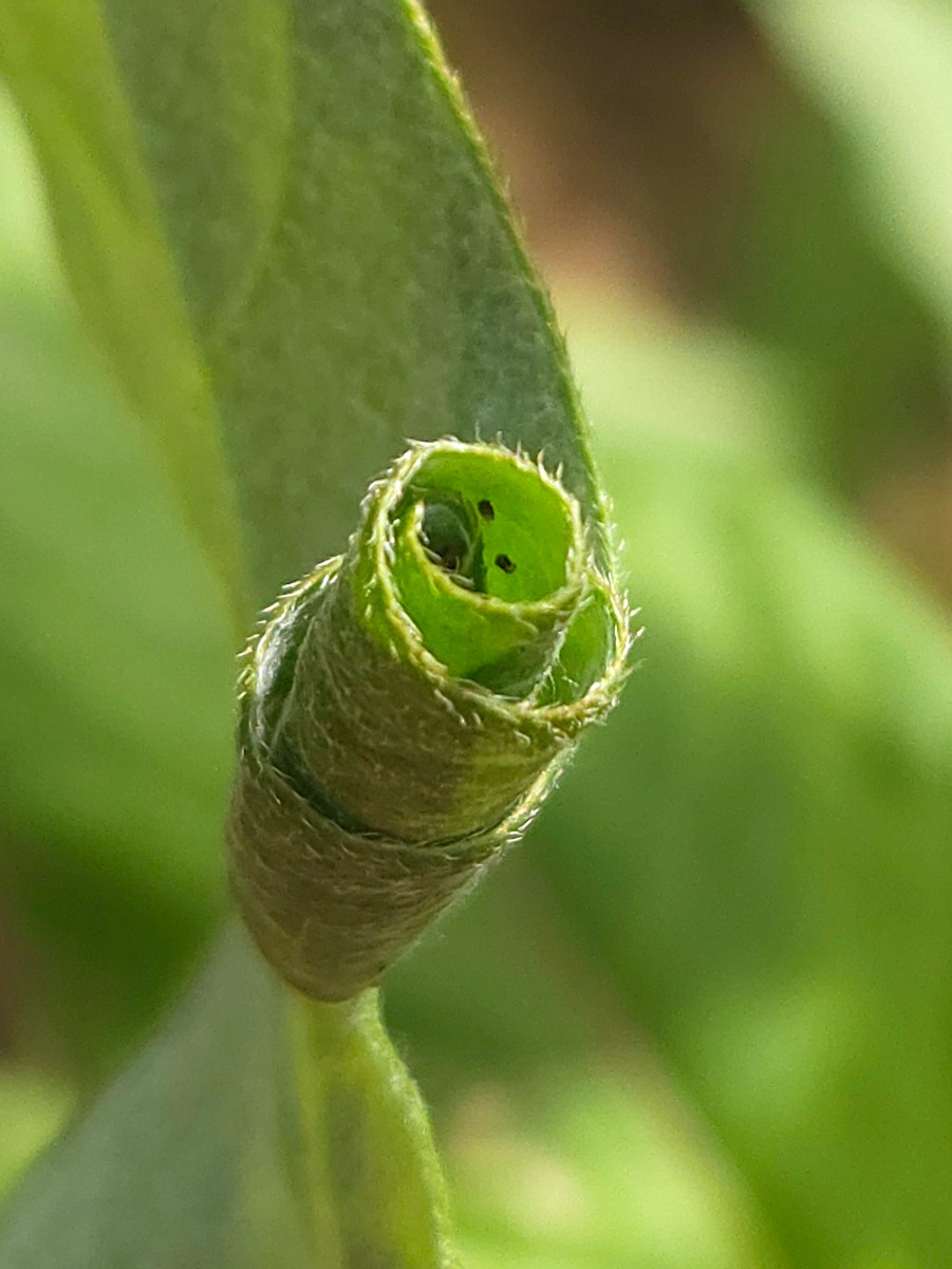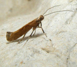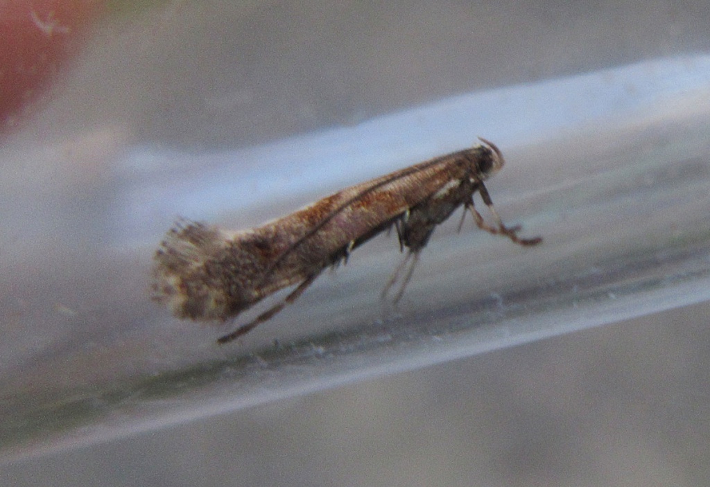 The larva mines the leaves of various plants such as Dock species, Loosestrife, Water-pepper, Redshank and Black Bindweed. An initial gallery leads to a blotch; later instars leaves the mine and feeds inside a cone-shaped leaf-roll, made by cutting a strip out of the leaf the leaf alongside the midrib.