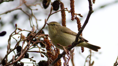 The Chiffchaff picks insects from trees and also flies out to snap them up in flight.