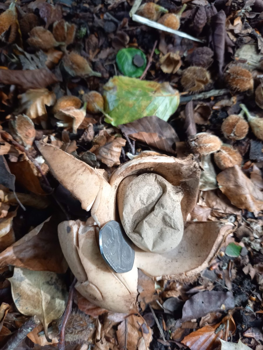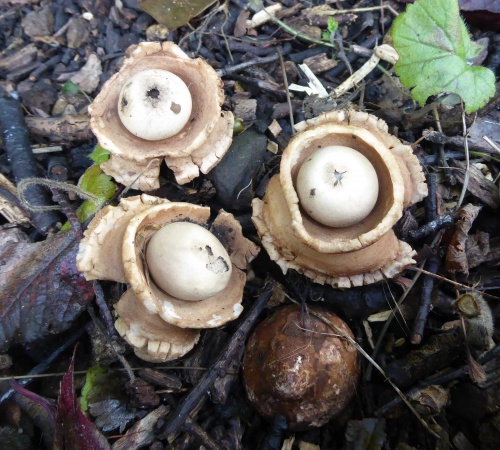 [Note: In some sources this species is called Geastrum michelianum; this is probably a more correct name, but it is still called G triplex on the NBN.]