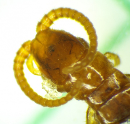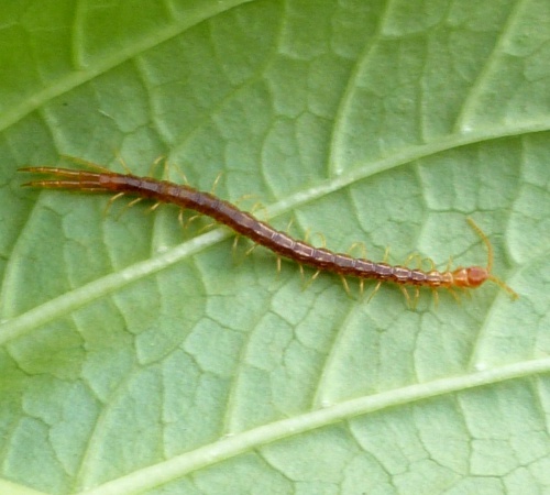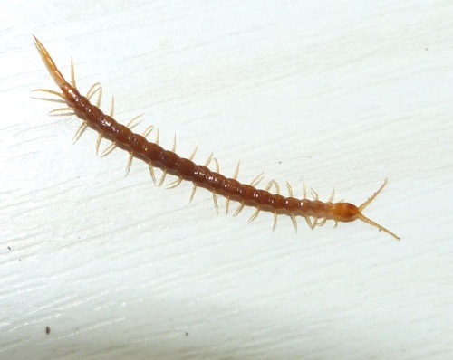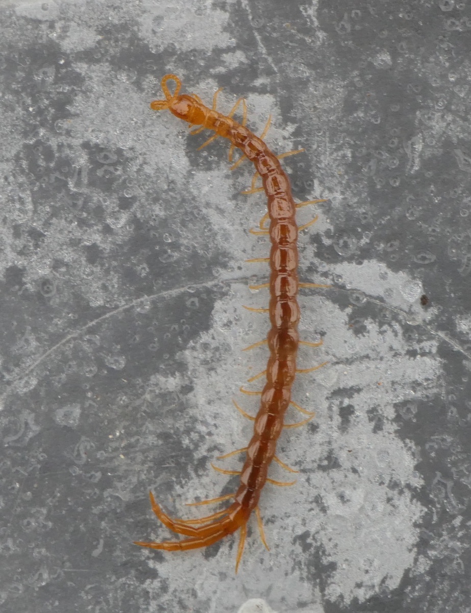 Cryptops hortensus is the commonest of the three UK Cryptop species. The genus can be recognised by having 21 pairs of legs with the rear pair being significantly larger and pointing backwards.