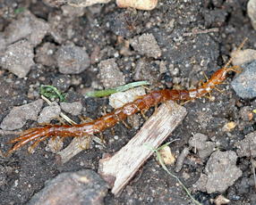 This small centipede is found regularly in gardens and woodland where it hides under stones and logs.