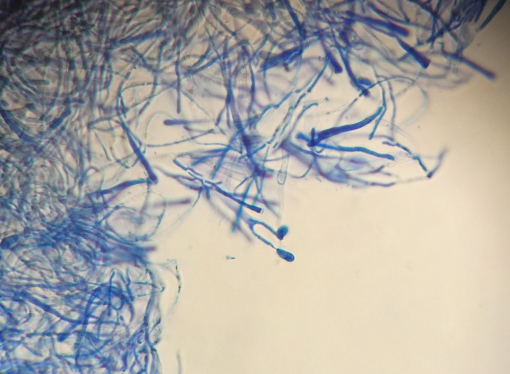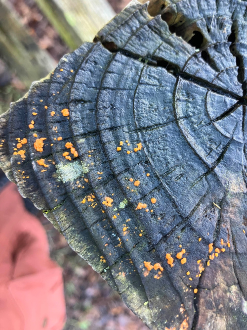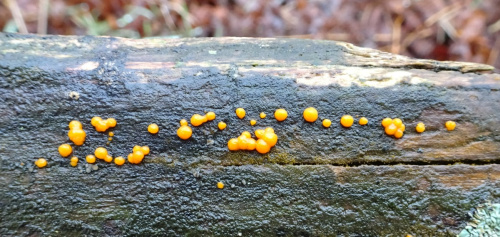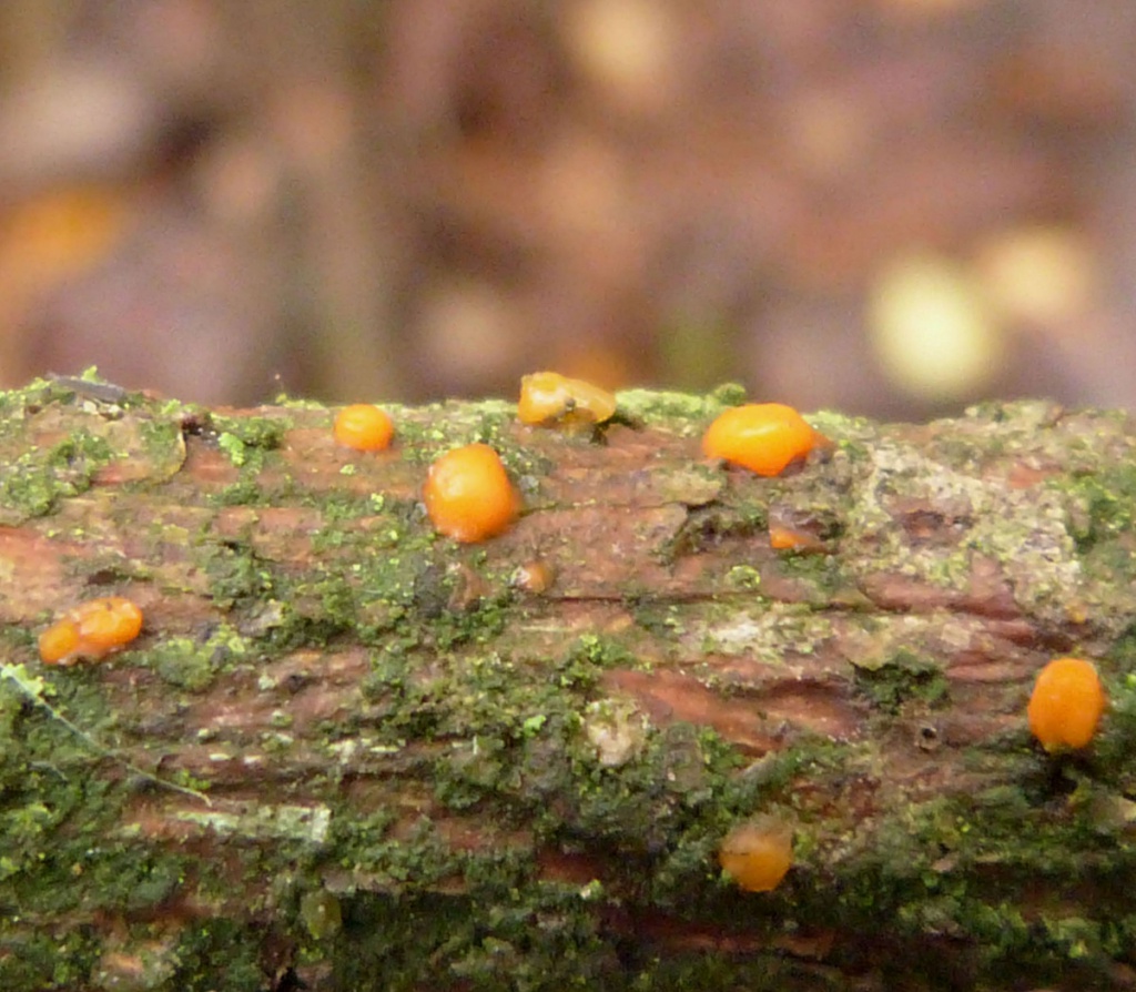 On damp decaying coniferous and deciduous wood. Often on sawn surfaces, including fence posts, planks etc., as well as logs and stumps.