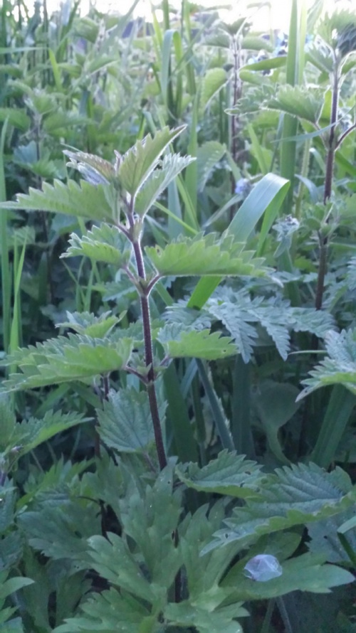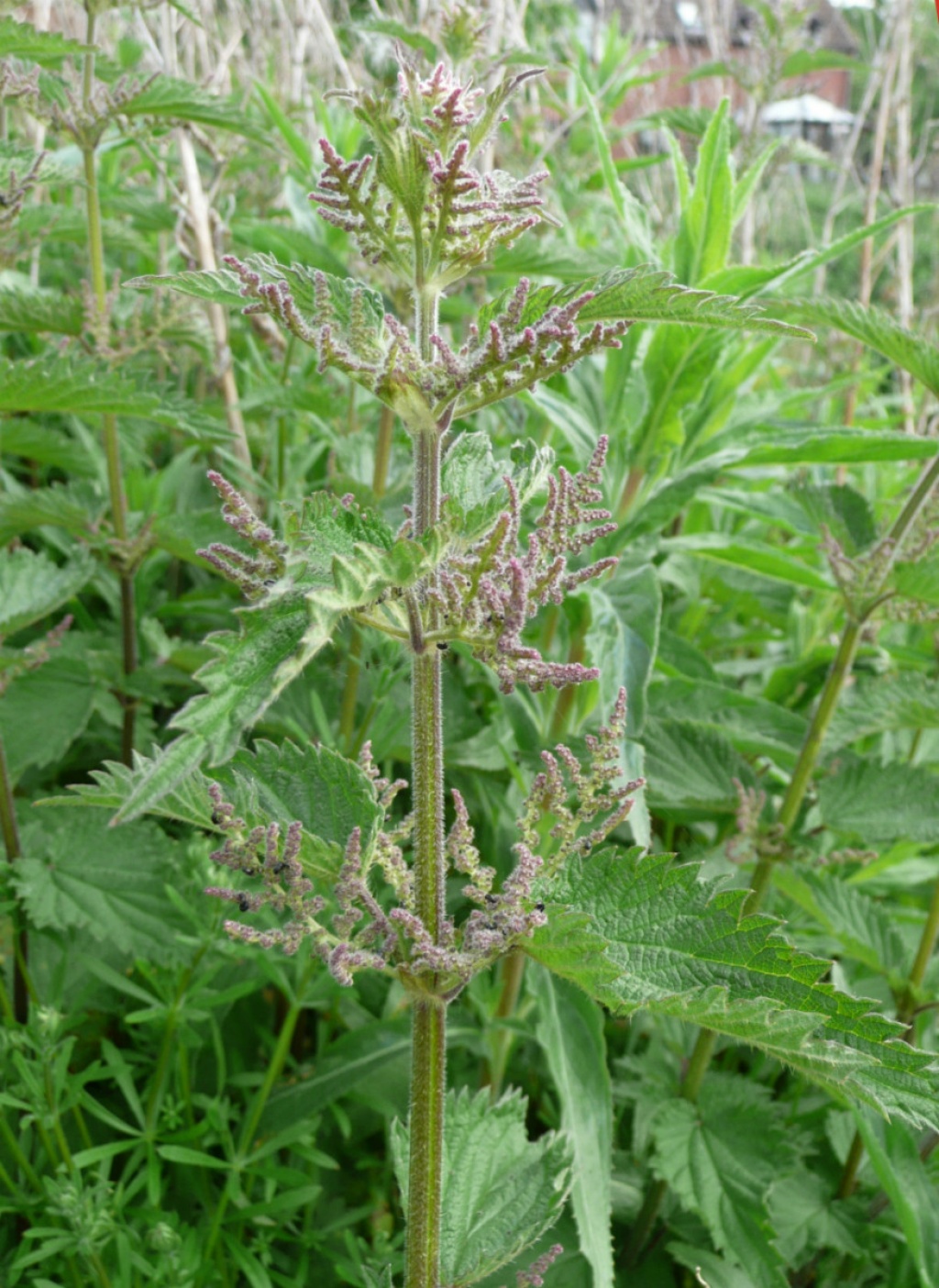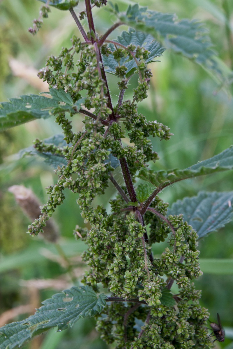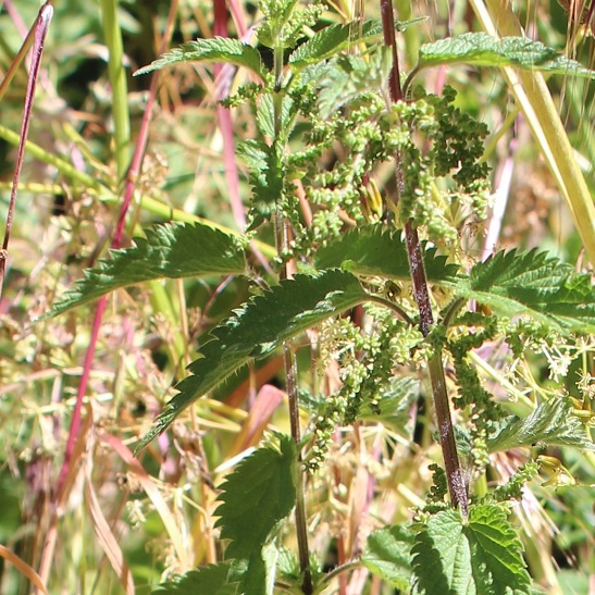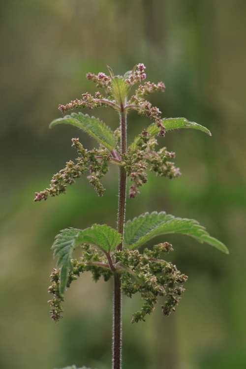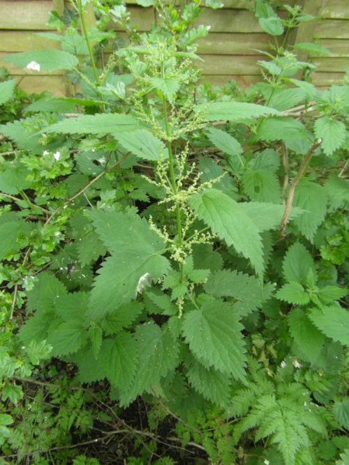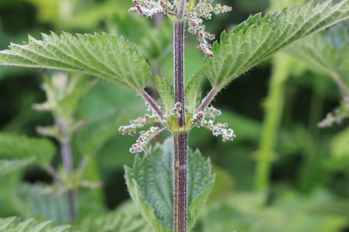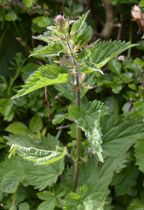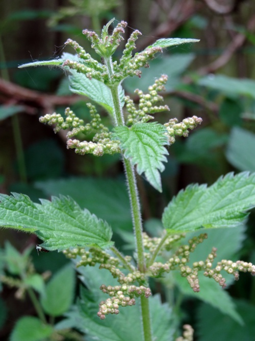 Medium to tall vigorous often patch forming plant, with stout stolons and square stems. Leaves opposite, heart shaped to lanceolate, toothed and armed with stinging hairs. Terminal leaf-tooth longer than the lateral ones. Male and female flowers, greenish on separate plants. Male in long drooping catkin like spikes, female in small clusters.